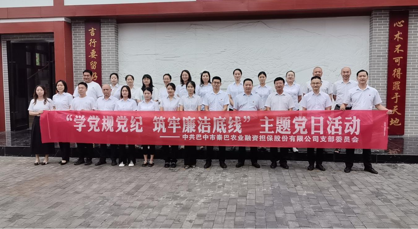 為扎實開展黨紀學習教育,不斷增強黨員干部紀律意識、規(guī)矩意識,筑牢拒腐防變的思想防線,6月21日上午,巴中市秦巴農(nóng)業(yè)融資擔保股份有限公司黨支部組織公司全體黨員、干部職工到恩陽“問心堂”德廉教育基地開展“學習黨規(guī)黨紀、筑牢廉潔底線”黨紀學習主題黨日活動。